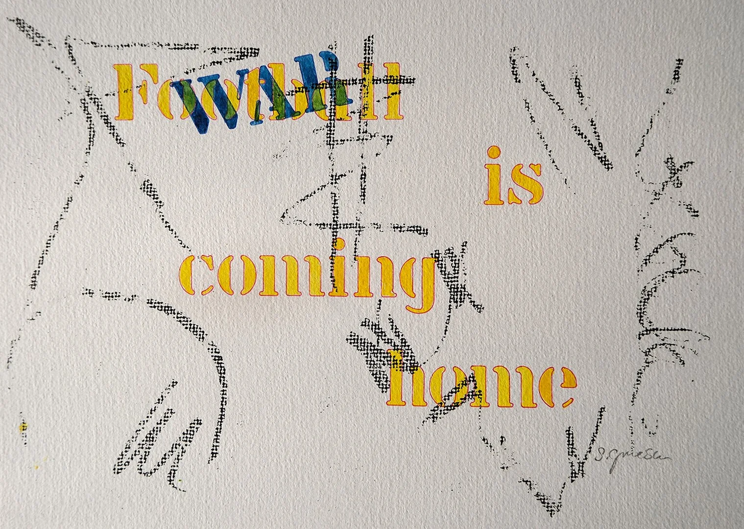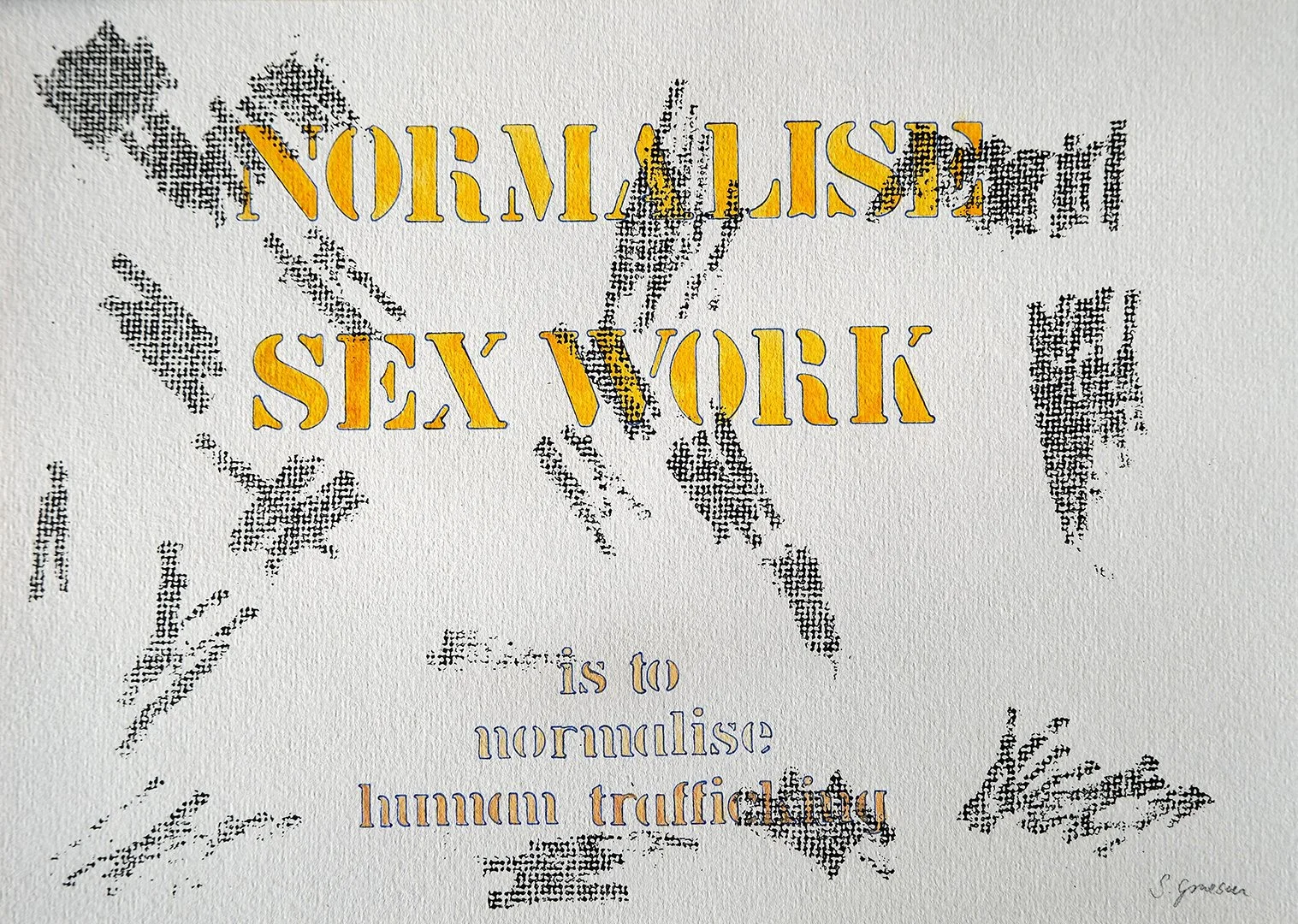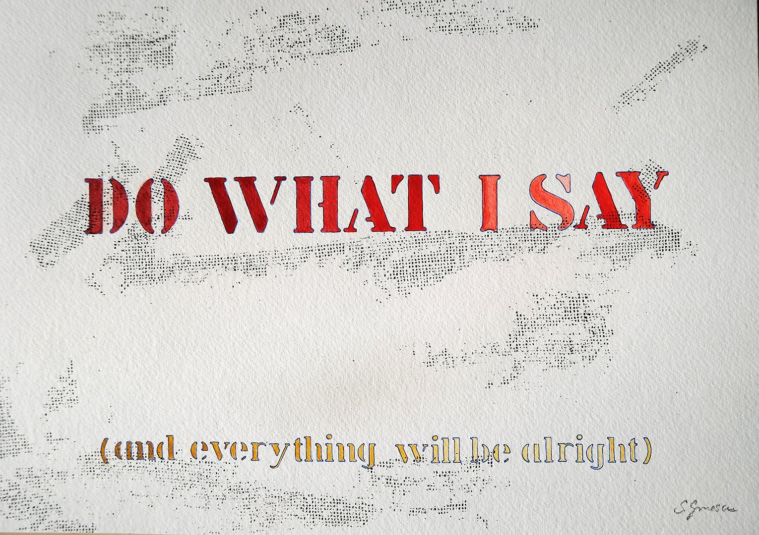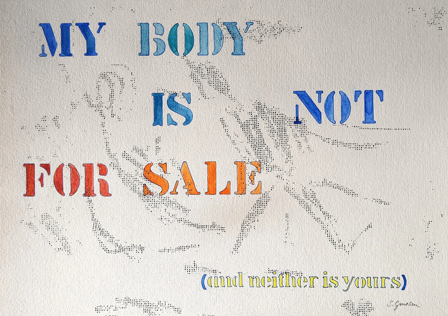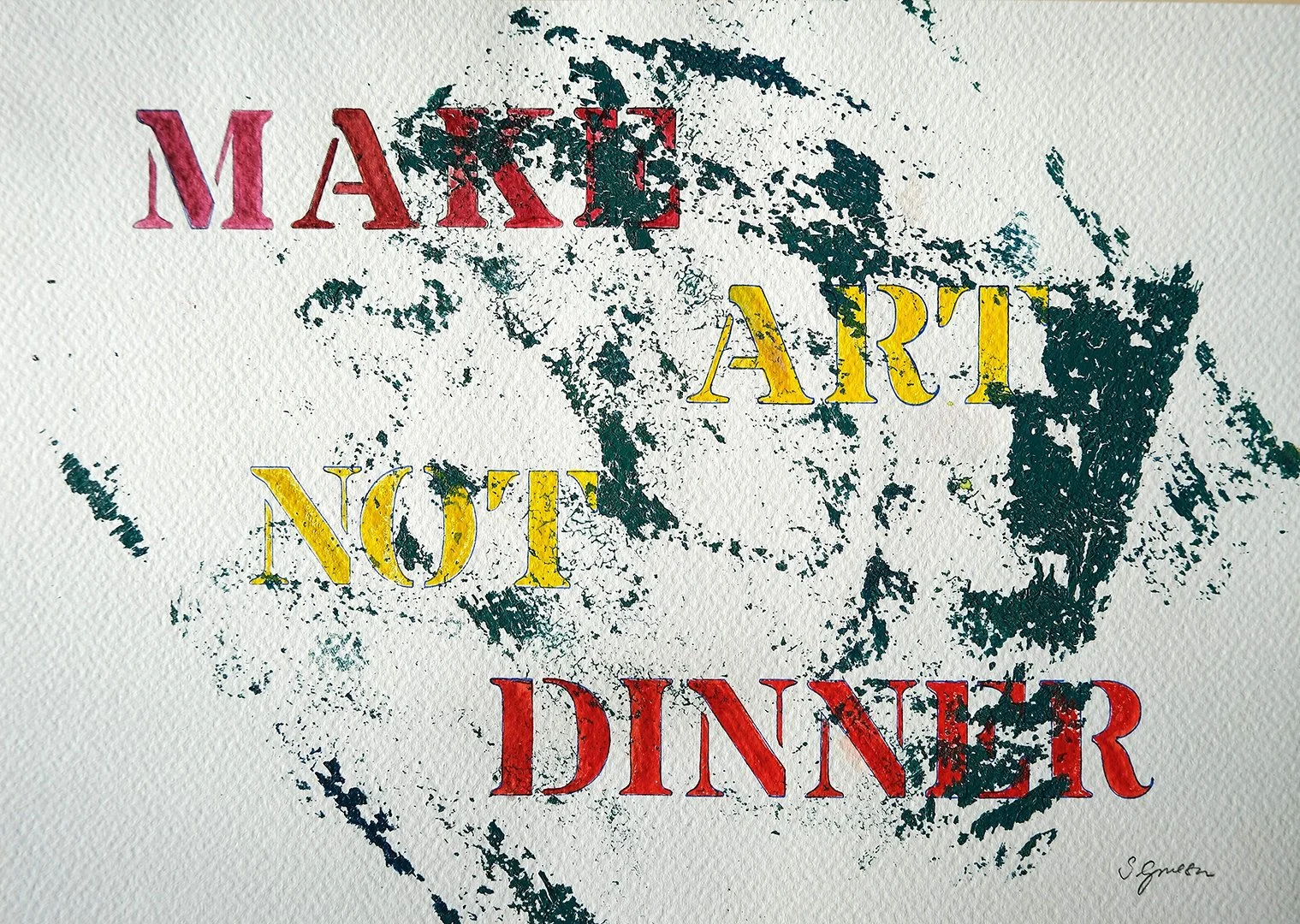 My artwork often expresses a feeling, a thought, or a political viewpoint. In its simplest form one can see those in my “What am I thinking?” series. These are done with stencils and watercolour on paper.
